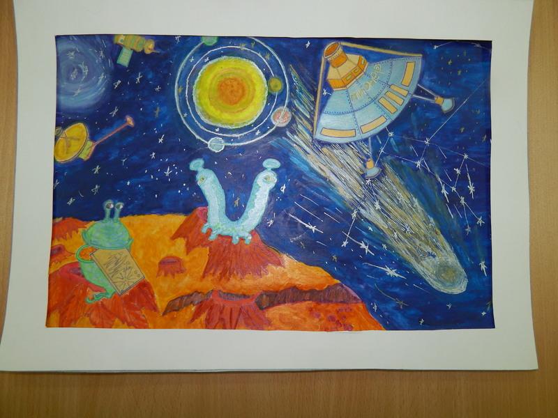 |  |  Класс: 4 ФИО автора: Кадырмаева Регина Наставник: ГарифуллинаГульнараГудаеровна Название картины: 'моя мечта-космос' Техника: гуашь Город: Кандры Район: Туймазинский ОУ: МБОУ СОШ № 1 с. Кандры |