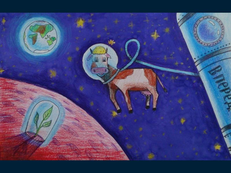 |  |  Класс: 6 ФИО автора: Кузнецова Маргарита Наставник: Анпилогова Анна Анатольевна Название картины: 'Корова на орбите' Техника: смешенная техника Город: Уфа Район: Орджоникидзевский ОУ: МБОУ "Гимназия № 82" |