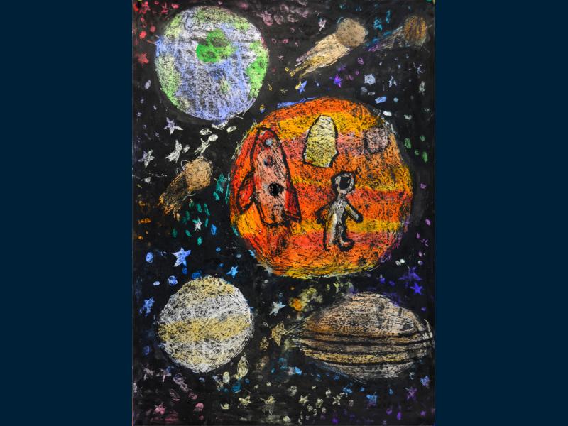 |  |  Класс: 3 ФИО автора: Федорова Александра Михайловна Наставник: Название картины: '"Космическая фантазия"' Техника: пастель Город: Уфа Район: Калининский ОУ: МБОУ Школа № 118 |