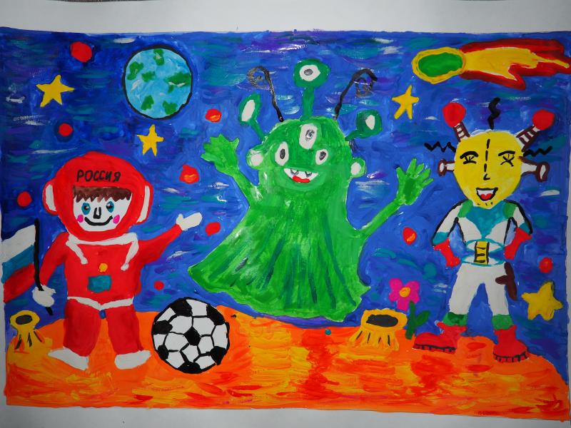 |  |  Класс: 1 ФИО автора: Ногин Матвей Наставник: Кудабаева Наркас Рифовна Название картины: 'Космический Футбол 2018' Техника: гуашь Город: Михайловка Район: Уфимский ОУ: МОБУ СОШ с. Михайловка |