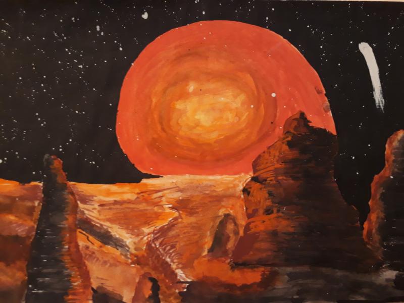 |  |  Класс: 4 ФИО автора: Федорова Анна Наставник: Федорова Ольга Михайловна Название картины: 'Тайны Марса' Техника: гуашь Город: Приютово Район: Белебеевский ОУ: МАОУ СОШ № 7 р.п. Приютово |