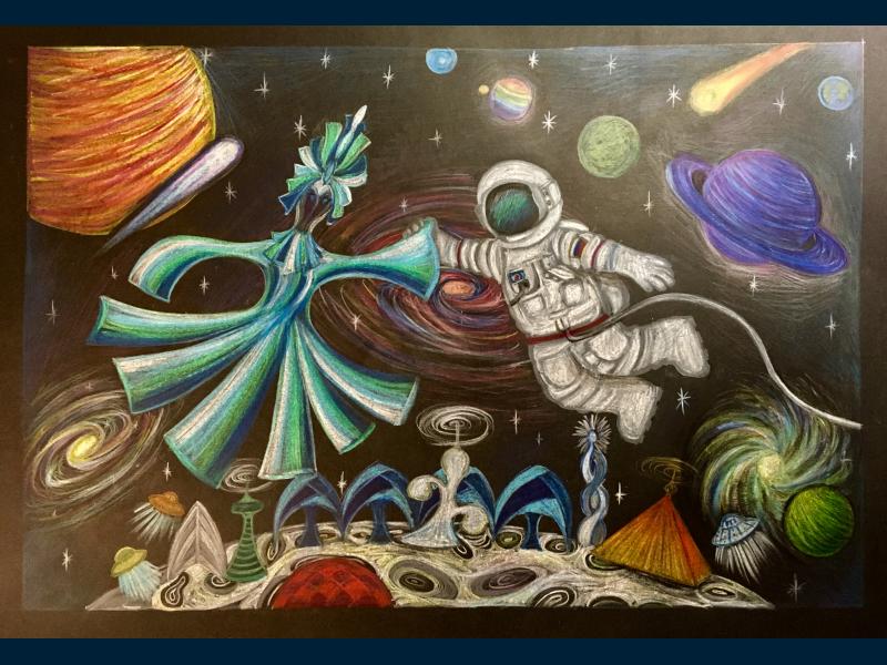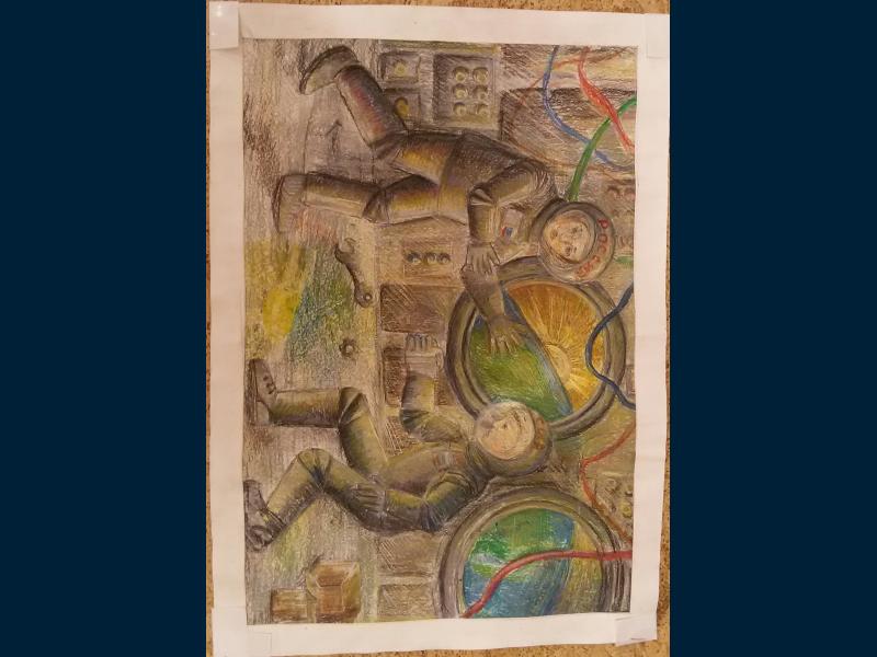 |  |  Класс: 7 ФИО автора: Имангулова Зарина Наставник: Султангареева З. С. Название картины: '"Моя мечта: я член экипажа МКС"' Техника: пастель Город: Уфа Район: Орджоникидзевский ОУ: ГБОУ РИЛИ |