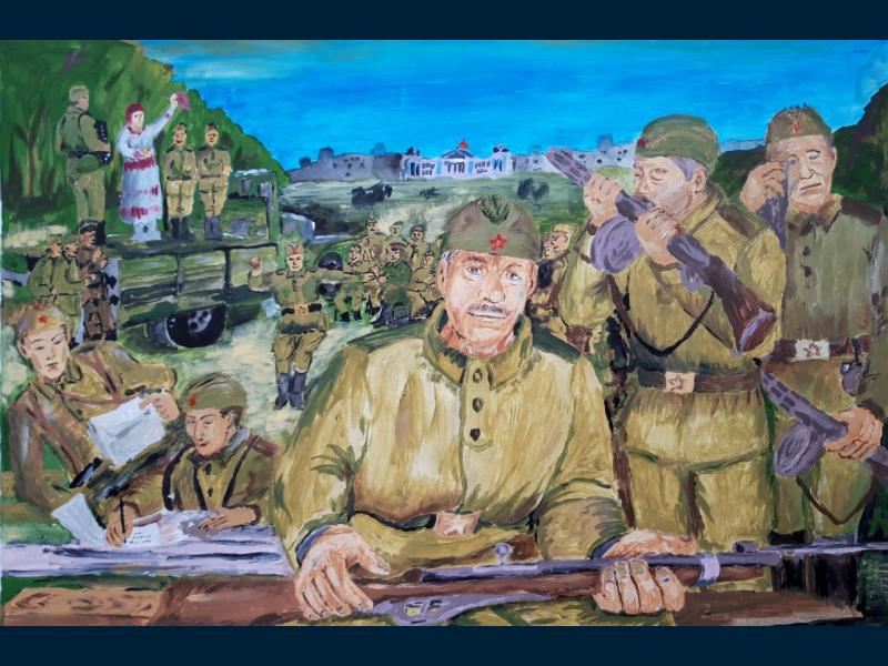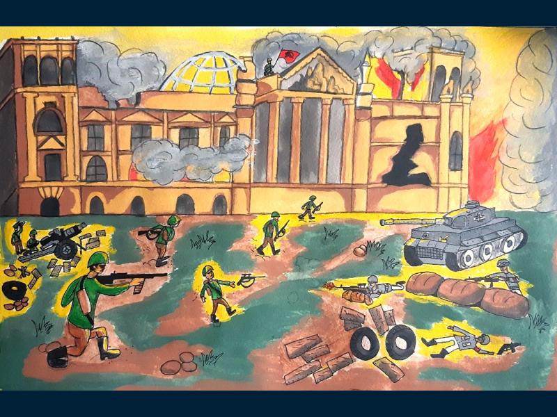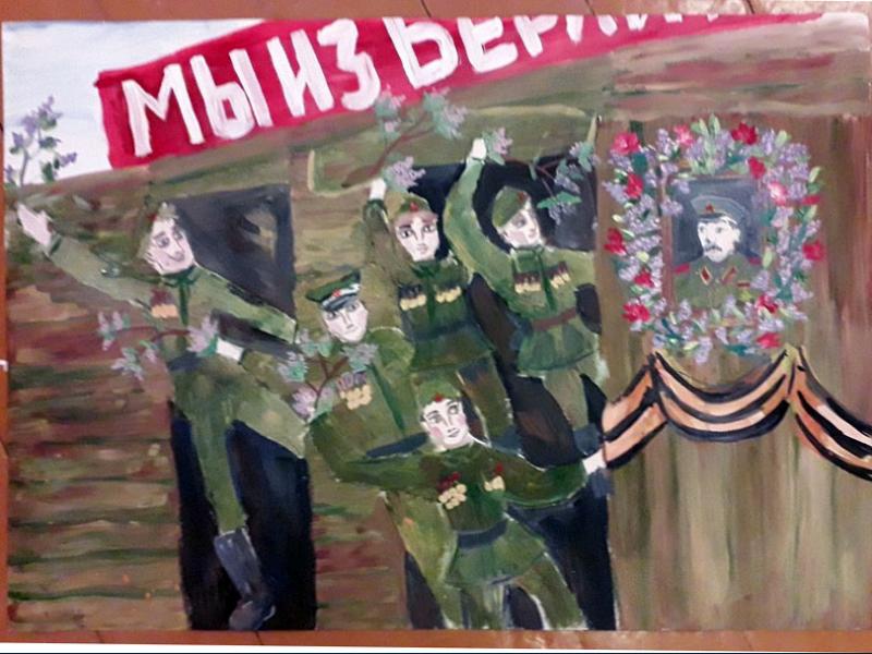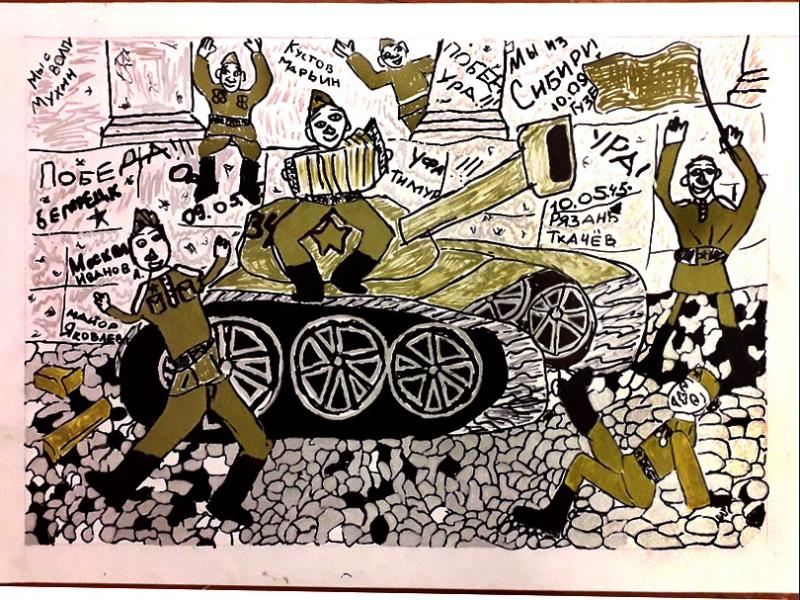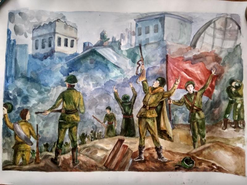 |  |  Класс: 4 ФИО автора: Гайсина Маргарита Руслановна Наставник: Суханова Оксана Алексеевна Название картины: 'Дошли до берлина' Техника: гуашь Город: Уфа Район: Октябрьский ОУ: МАОУ "Лицей № 155" |