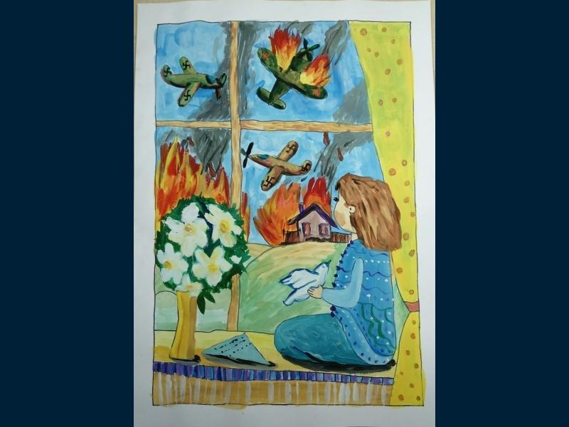 |  |  Класс: 2 ФИО автора: Альмакаева Лиана Динаровна Наставник: Валеева Эльмира Анваровна Название картины: 'Дети войны' Техника: гуашь Город: Туймазы Район: Туймазинский ОУ: МБОУ СОШ № 5 г. Туймазы |