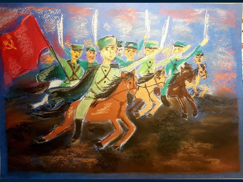 |  |  Класс: 3 ФИО автора: Галимова Алина Радиковна Наставник: Янбаева Айгуль Ханановна Название картины: '112-я Башкирская кавалерийская дивизия' Техника: пастель Город: Уфа Район: Октябрьский ОУ: МАОУ "Лицей № 155" |