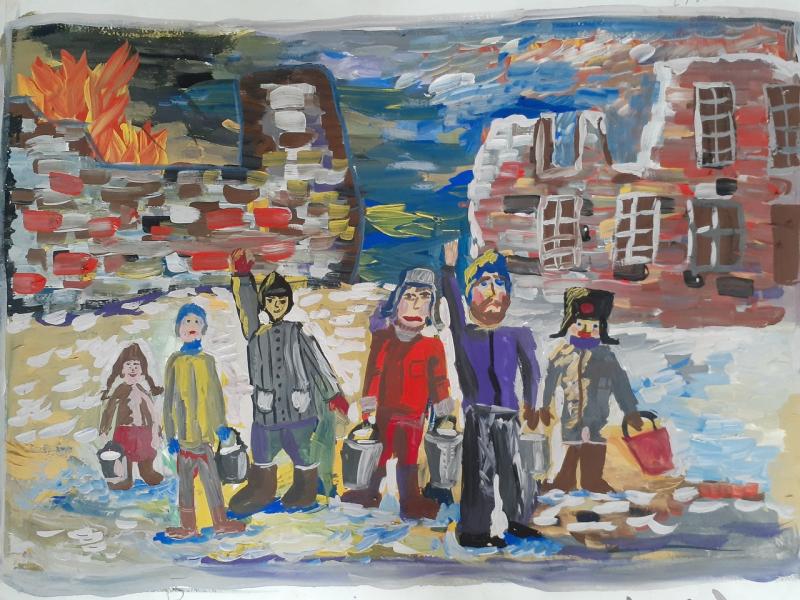 |  |  Класс: 1 ФИО автора: Хасанова Дарья Наставник: Хасанова Татьяна Юрьевна Название картины: 'Дети блокадного Ленинграда' Техника: гуашь Город: Нефтекамск Район: ОУ: МОАУ СОШ № 7 |
