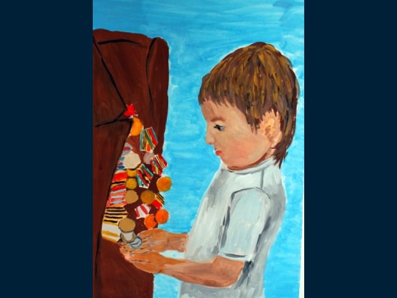 |  |  Класс: 8 ФИО автора: Якунин Глеб Наставник: Хабибуллина Людмила Николаевна Название картины: '"Я помню.Я горжусь"' Техника: другая Город: Уфа Район: Кировский ОУ: ГБОУ РЦДО |