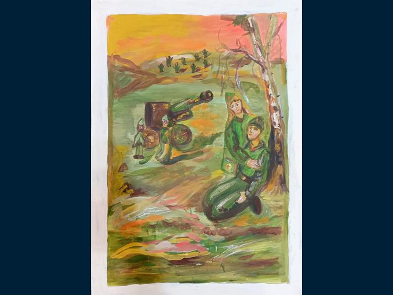 Класс: 2 ФИО автора: Хайруллин Дамир Наставник: Пация Наталья Александровна Название картины: 'Весточка с фронта' Техника: гуашь Город: Уфа Район: Кировский ОУ: МАОУ "Гимназия № 16"