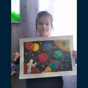 ![]() | ![]() | Класс: 1 ФИО автора: Кутдусова Дилия ФИО учителя: Азимова-Семёнова И.Ш. Название картины: '«Космос»' Техника: акварель пазл |
