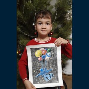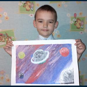 ![]() | Класс: 1 ФИО автора: Полтарабатько Владимир ФИО учителя: Кузнецова Роза Равиловна Название картины: 'Мой космос ' Техника: смешанная техника пазл | |