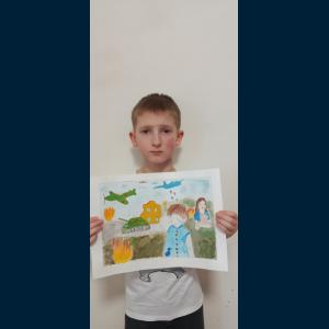 |  |  | Класс: 1 ФИО автора: Черкасов Павел ФИО учителя: Мухаррямова Лариса Миргасимовна Название картины: '"Дети войны"' Техника: гуашь пазл |
