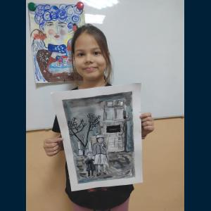 |  |  | Класс: 2 ФИО автора: Латыпова Эмилия ФИО учителя: Ермухаметова Алина Айдаровна Название картины: 'Хроники блокадного Ленинграда' Техника: акварель Изостудия: ИЗО студия "Я рисую" пазл |