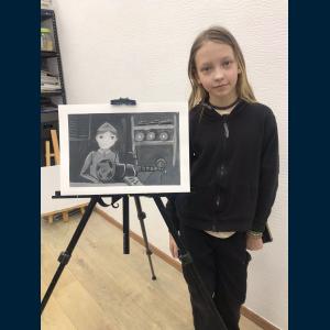 |  |  | Класс: 3 ФИО автора: Валиуллина Арина ФИО учителя: Хаертдинова Гульназ Венеровна Название картины: 'Рисунок для солдата' Техника: карандаш Изостудия: Студия рисования "Я Творю" пазл |