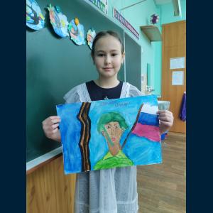 |  |  | Класс: 1 ФИО автора: Якупов Клим ФИО учителя: Ахмадуллина Оксана Борисовна Название картины: 'Рисунок для солдата. Долгожданная победа!' Техника: гуашь пазл |